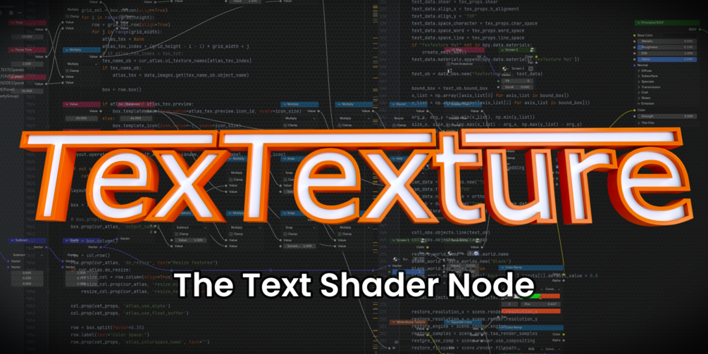 Bring text into your Blender materials with a single node which works like any other texture node in the shader editor.
